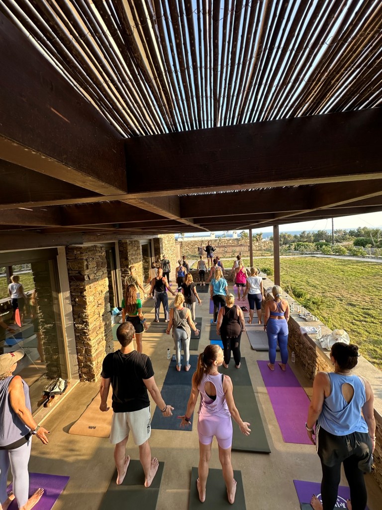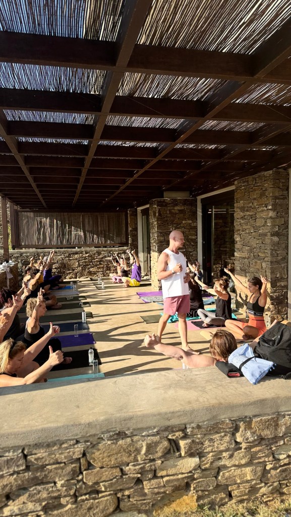 Το retreat ξεκίνησε με μια αίσθηση άφιξης σώματος και πνεύματος: από το πρώτο χάδι του μεσημεριανού φωτός στους κοινόχρηστους χώρους του ELA Tinos, μέχρι τις πρώτες πρακτικές Breath & Connect, Core workouts και Release Tension sessions στην αυλή του ξενοδοχείου. Η μέρα κυλούσε ανάμεσα σε πρακτικές yoga nidra, αναπνοών και fitness sessions που καθόρισαν έναν ρυθμό ήρεμο αλλά παρών, ενθαρρύνοντας την κάθε μέρα να ανοίξει μέσα μας χώρο για παρουσία.